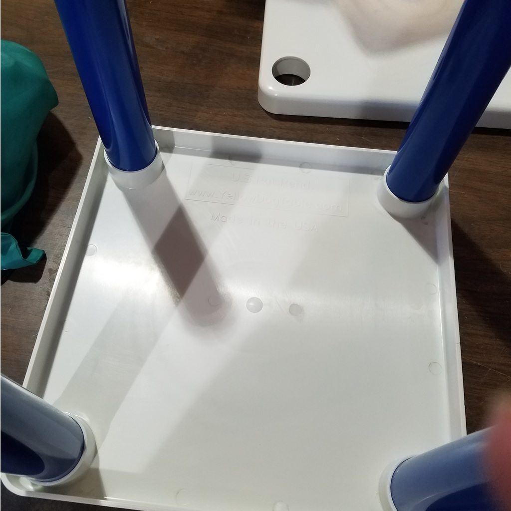 The Yellow Dog® table is constructed of sturdy 1/8″ thick custom molded plastic. The label is printed using heat sealing to assure resistance to fading and ensure durability. The legs are made of furniture grade 1/8″ plastic.